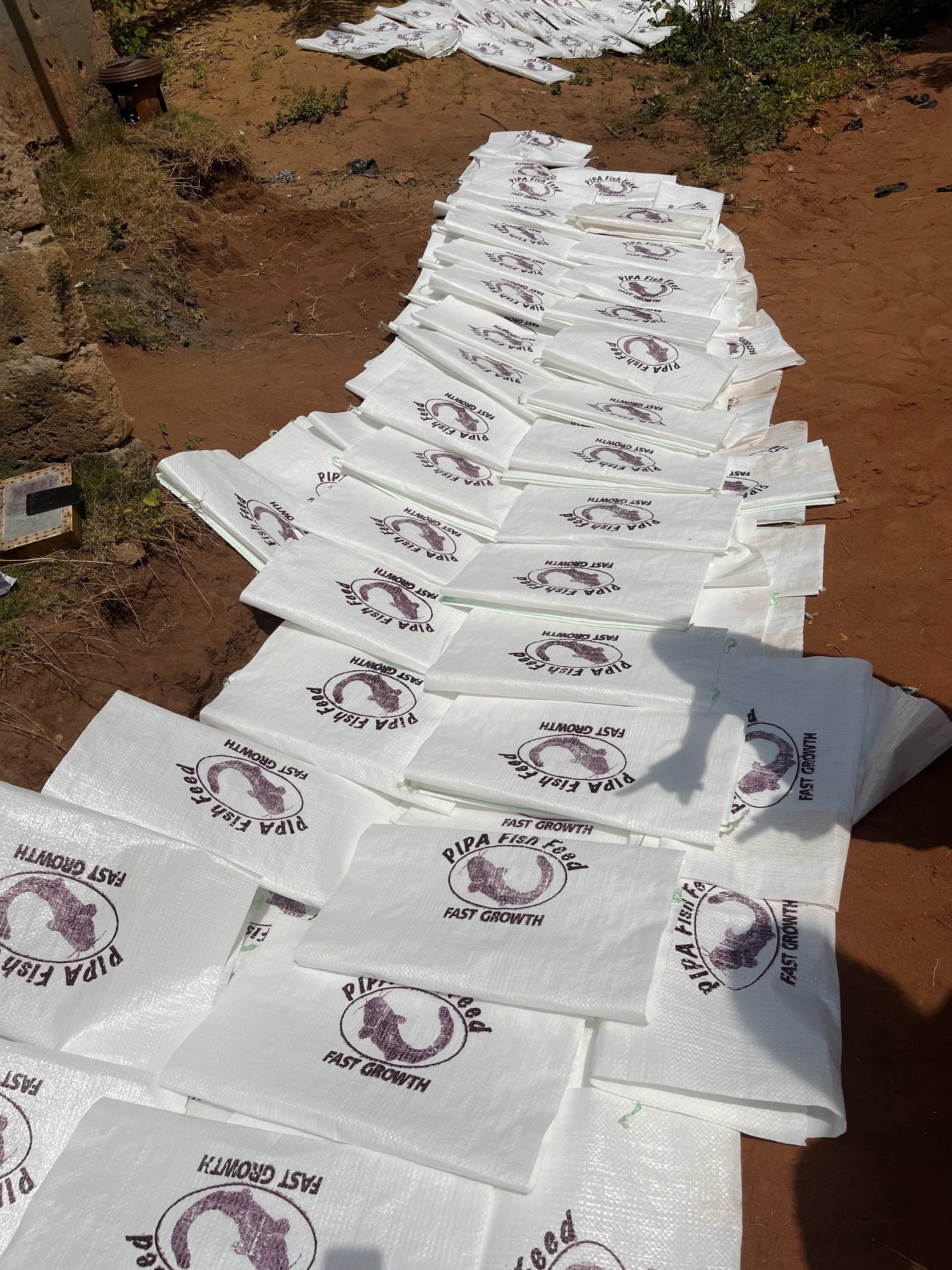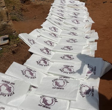 MOBOVOME raises three different types of fish: clarias (catfish), black tilapias, and red tilapias. Clarias eggs and seeds are collected, and then reproduction is carried out artificially by the companions, while tilapias reproduce naturally in a controlled environment. The farm produces monosex tilapias.
