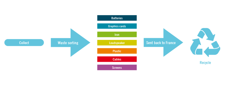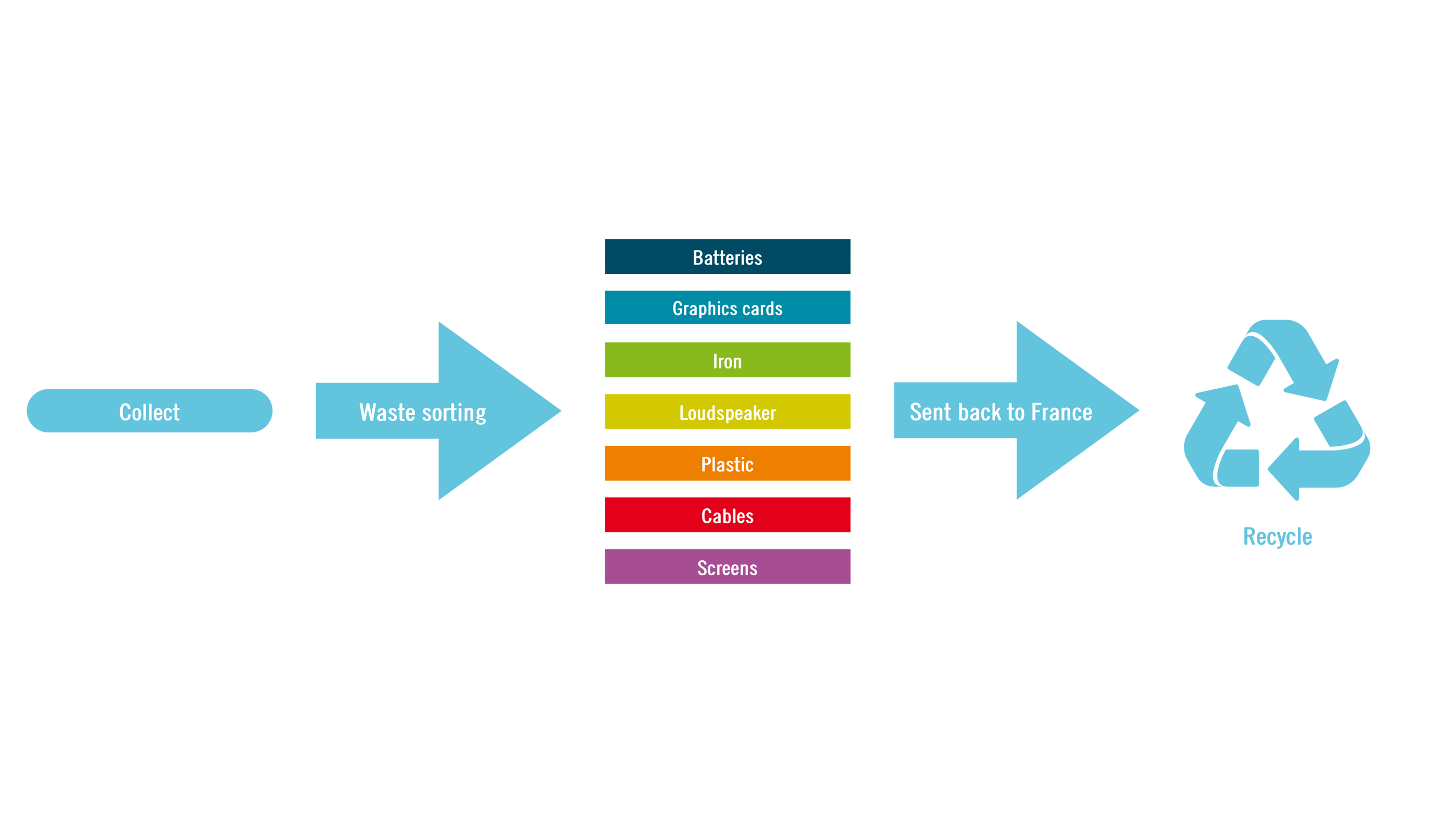 Emmaüs Pahou also coordinates the activities of the Cotonou Bocage Workshop. This workshop is an offshoot of the Bocage Workshops in France and aims to collect waste and electrical and electronic equipment (WEEE), sort them by category before sending them back to France for recycling.