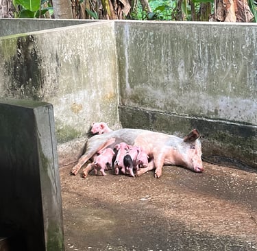 They also raise pigs, chickens, rabbits, goats, and ducks.