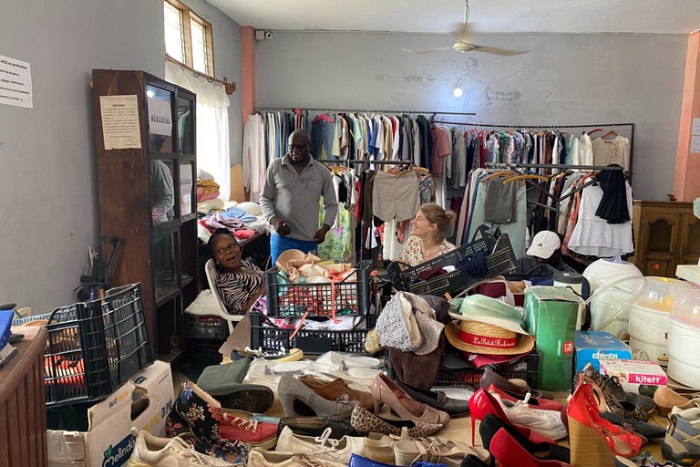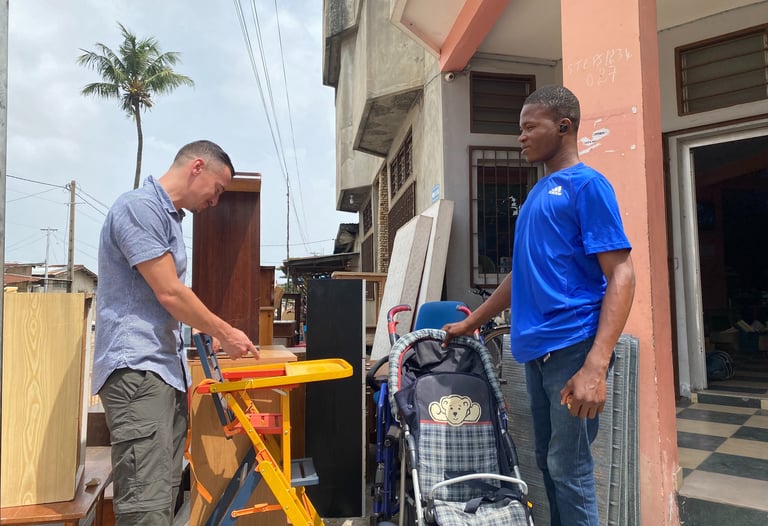 The container shipping program constitutes the main economic activity of the Emmaus communities in Benin. The Bric-a-Brac is a solidarity shop that values second-hand objects, sent by Emmaus groups in containers, notably from Europe, whose sales finance social projects. Grégoire and Marie were able to meet the activity's managers, visit the Bric-à-Bracs, and exchange with customers. They collected testimonials from both people working within the activity and those external to it.